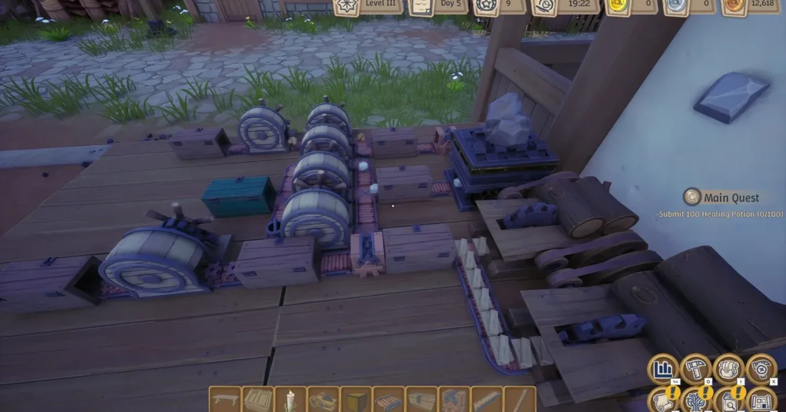 По мере повышения уровня у вас будет появляться все больше постоянных построек, из-за чего вам будет очень сложно отслеживать, куда нужно добавлять бревна, камень или любой другой материал. Чтобы избежать многих проблем в конце игры, настоятельно рекомендуется управлять строительством с самого начала, чтобы оно было в значительной степени автоматизировано.