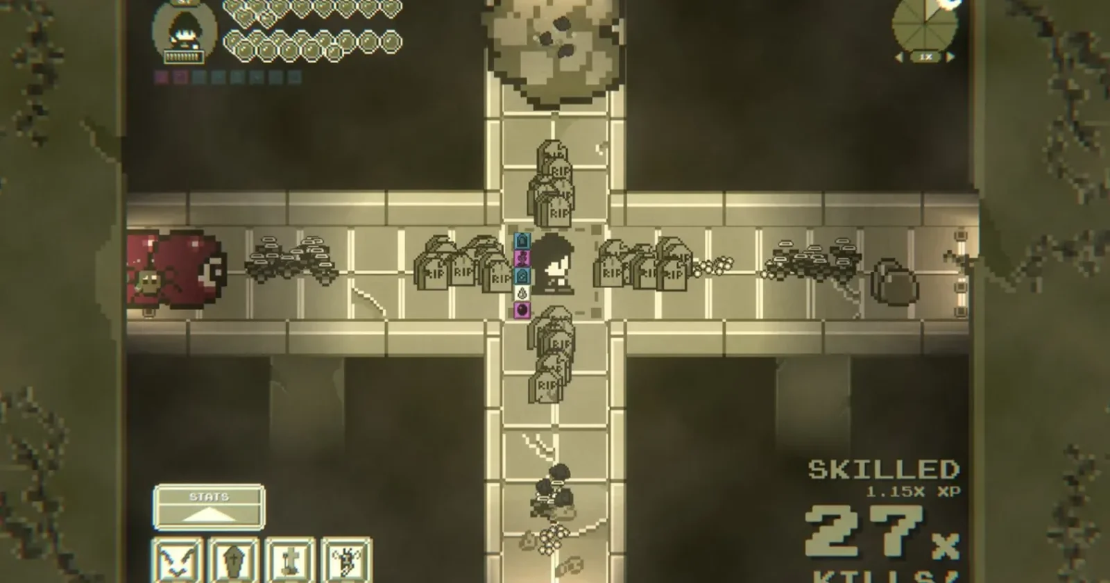 Играть в игру просто: выберите класс, используйте клавиши со стрелками, чтобы отстреливаться от врагов, приближающихся со всех сторон света, собирайте опыт и уровни, чтобы выбрать лучшие таланты из процедурно сгенерированного дерева навыков.