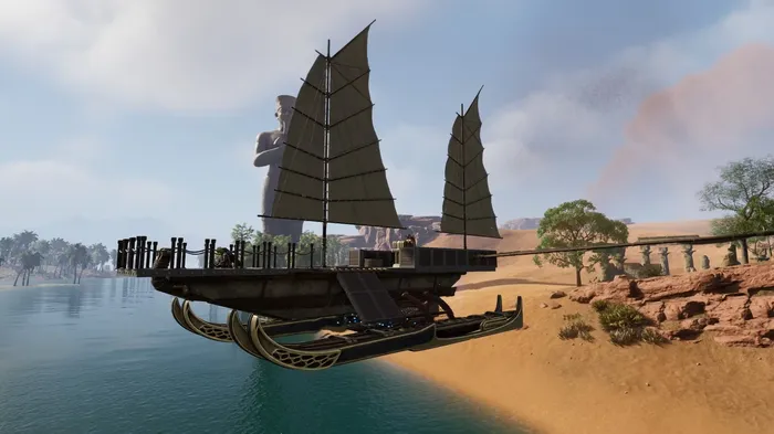 Чтобы получить доступ к необходимым деталям дирижабля, вам нужно разблокировать узел «Техника дирижаблей» в древе технологий, но прежде вам нужно победить босса-крокодила Собека в пирамиде в регионе Бесплодные пески. Это будет тяжелая битва, так что вам понадобится как минимум бронзовое снаряжение и несколько соплеменников, которые помогут вам. Ваши спутники-NPC, скорее всего, погибнут в бою, но вы всегда сможете заменить или воскресить их позже. Вооружите их как следует, чтобы у них было больше шансов выжить.